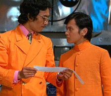 Manos ninja, in front of the purple segment of his multi-colored minions. The movie is awesome.