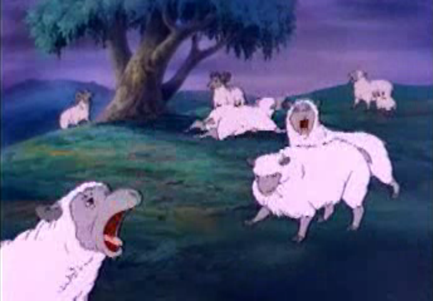 The animation in both of these movies is…sub-par. In particular, most of the male characters have identical beards/mustaches, which makes telling people apart nearly impossible. There were also a lot of moments where the motions seemed jarring, like they were cutting corners by skipping frames. There were instances where the animators clearly didn’t know what they were doing, such as when anyone’s feet were in motion on screen, or if any characters were depicted crying. There is also a horrifying moment where sheep are shown in a state of panic during an earthquake. The animators’ attempt to depict sheep mouths looks like nightmare fuel.