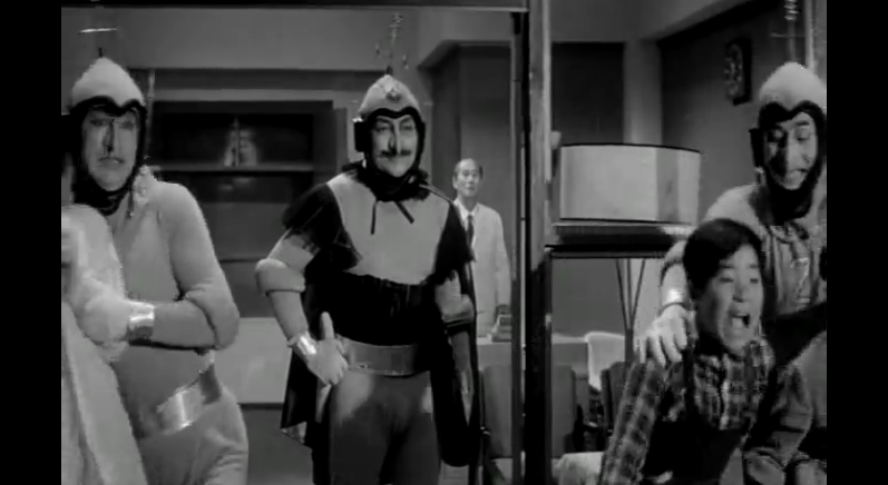 All of that said, “Prince of Space” doesn’t quite have the same charm of those old Toho features. There is plenty of cheesy dialogue and an outstanding over-the-top villain, but I’ve never been able to suffer child protagonists very well, and there is a hefty dose of those in “Prince of Space”. Also, the plot certainly takes it time getting where it is going, and bad pacing is capable of killing far better movies than this. There is also a fair amount of repetitiveness in this feature, particularly in the encounters between the villain (The Phantom) and the mysterious hero (the titular Prince of Space). Prince of Space makes it clear early on that the weapons used by The Phantom and his minions can not harm him (and repeats this fact numerous times), yet The Phantom attempts to shoot him at every turn. At first it is pretty entertaining, but it gets old very fast.