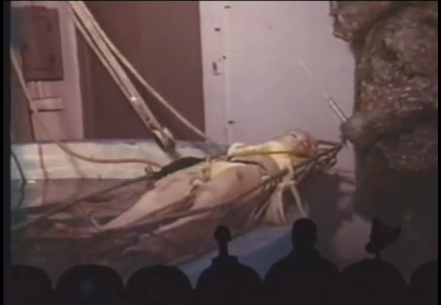 “Zaat” is a movie about a mad scientist who turns himself into a human-catfish hybrid, and then terrorizes a town. He kidnaps and performs experiments on people until he is discovered and defeated. That premise sounds vastly much more interesting than this movie actually is. Generally, most of the movie is a man in a bad monster suit stumbling around blindly, occasionally carrying people around or fiddling with machinery . There’s also some lovely stock footage of fish with hilariously over-the-top voice over.