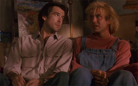 The first thing that is impossible not to notice about Lawnmower Man are the prominent performances from Fahey and Brosnan, and how much they dramatically differ from each other. Jeff Fahey is specifically trying way too hard to sell his role as Jobe, the mentally challenged subject of artificial intelligence enhancement testing, while Pierce Brosnan couldn’t be phoning in his performance any more if he performed while sleepwalking. The combination of the two makes for a baffling on-screen duo, to say the least.
