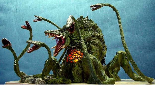 Iris, the primary adversary in Gamera 3, is a curiously designed creature. The head and sharp angles still look like a Gyaos, but tentacle-like appendages add a new element to the creature. Personally, I think it looks a little too busy on paper, though it does look pretty cool on screen. The tentacles reminded me a bit of Biollante, a Heisei Godzilla villain, though I like the aesthetic of the water flora/alligator much better than the…whatever Iris is supposed to vaguely look like. The color scheme also reminded me of the far less interesting Godzilla villain Destroyah, which was a clear influence.